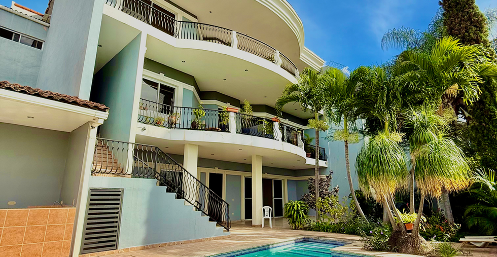 Casa de 3 niveles con 5 dormitorios, cada uno con baño completo, estudio, baño para visitas, lobby, sala formal, comedor, cocina amplia con desayunador y alacena, área de lavandería, 2 terrazas con vista a la ciudad, sala familiar, 2 bodegas, salón de eventos, área de jardín, piscina, área de bar, dormitorio de servicio con baño completo, 3 bodegas, 4 parqueos !completamente amueblada!